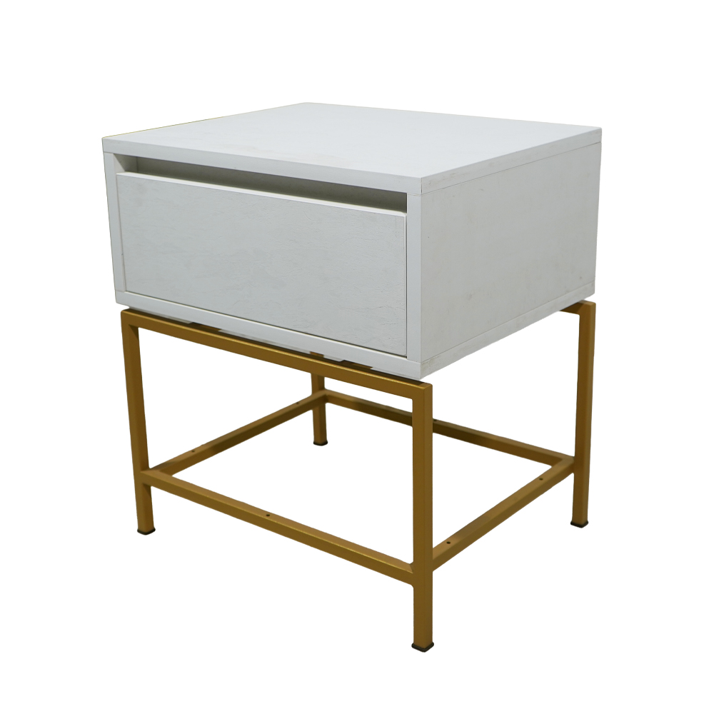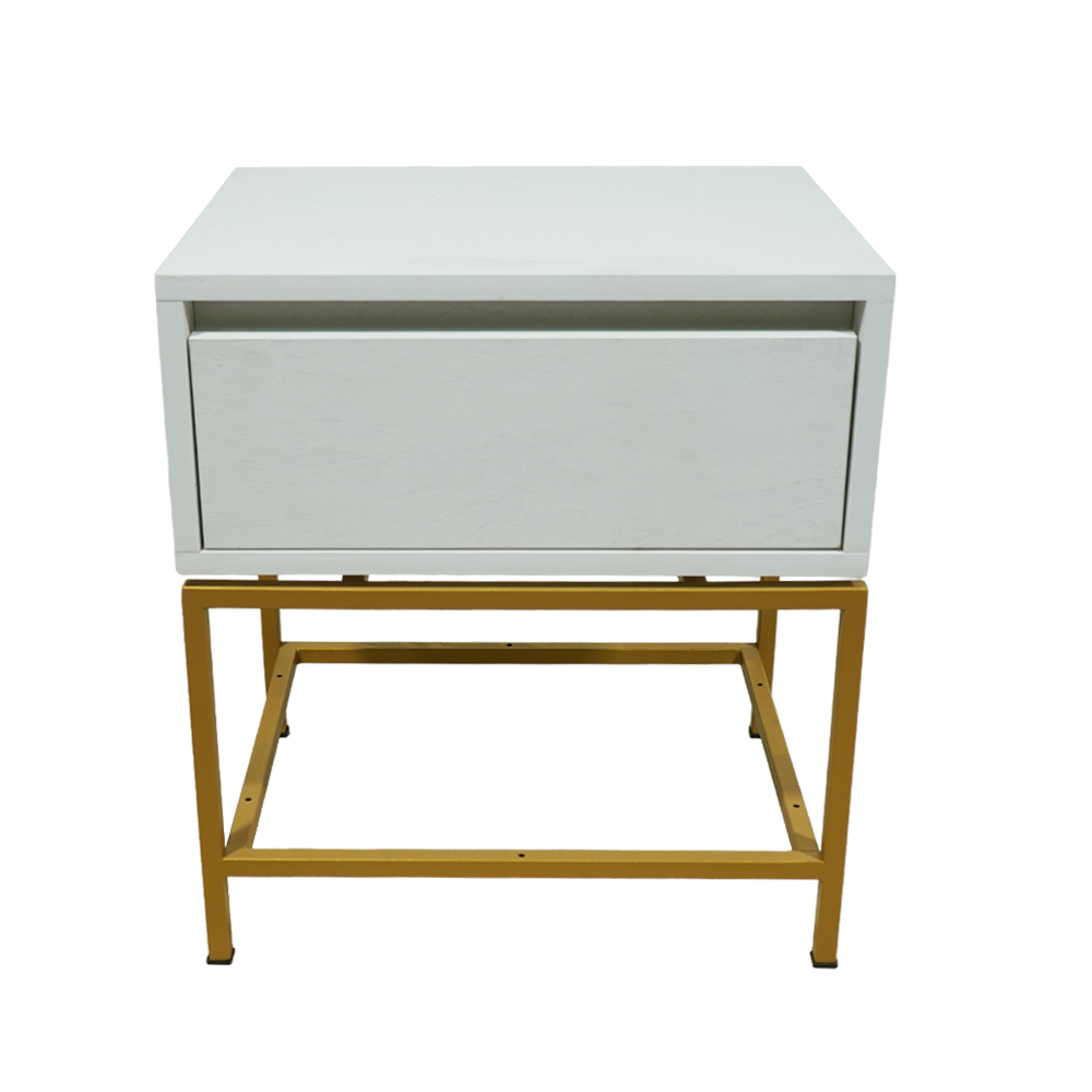 Αναδείξτε το υπνοδωμάτιό σας με το κομοδίνο Komo-Woodtex, ένα κομμάτι που συνδυάζει την πρακτικότητα με τον εκλεπτυσμένο χαρακτήρα της μαύρης μεταλλικής βάσης. Το συρτάρι και η επιφάνεια με όψη λευκού μάρμαρου προσδίδουν μια αίσθηση πολυτέλειας, ενώ η μεταλλική βάση σε χρυσό ολοκληρώνει το σύνολο με μία μοντέρνα πινελιά.