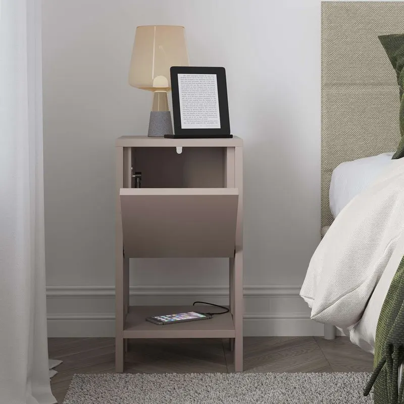 Μία minimal επιλογή κομοδίνου για την κρεβατοκάμαρά σας, η οποία παράλληλα να αυξάνει τη χρησιμότητα ενός βοηθητικού επίπλου για τις νυχτερινές σας ανάγκες με μεγάλο χώρο αποθήκευσης και υψηλής ποιότητας κατασκευή.