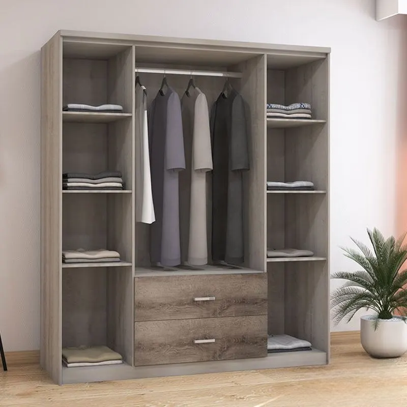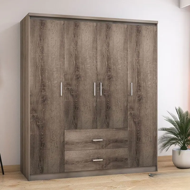 Η τετράφυλλη ντουλάπα Olympus σε χρώμα castillo – toro προσφέρει μεγάλο αποθηκευτικό χώρο, δύο συρτάρια, κεντρικές ράγες για κρεμάστρες και στενές πλευρικές πόρτες με ράφια, ιδανική για τάξη, οργάνωση και κομψή διακόσμηση σε κάθε χώρο.
