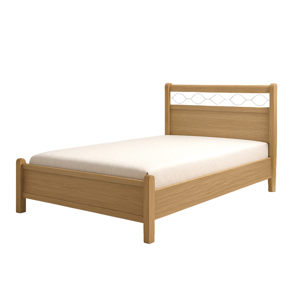 Το κομψό κρεβάτι του σετ αποτελεί το κεντρικό στοιχείο του υπνοδωματίου, με στιβαρή κατασκευή που εξασφαλίζει άνεση και σταθερότητα.