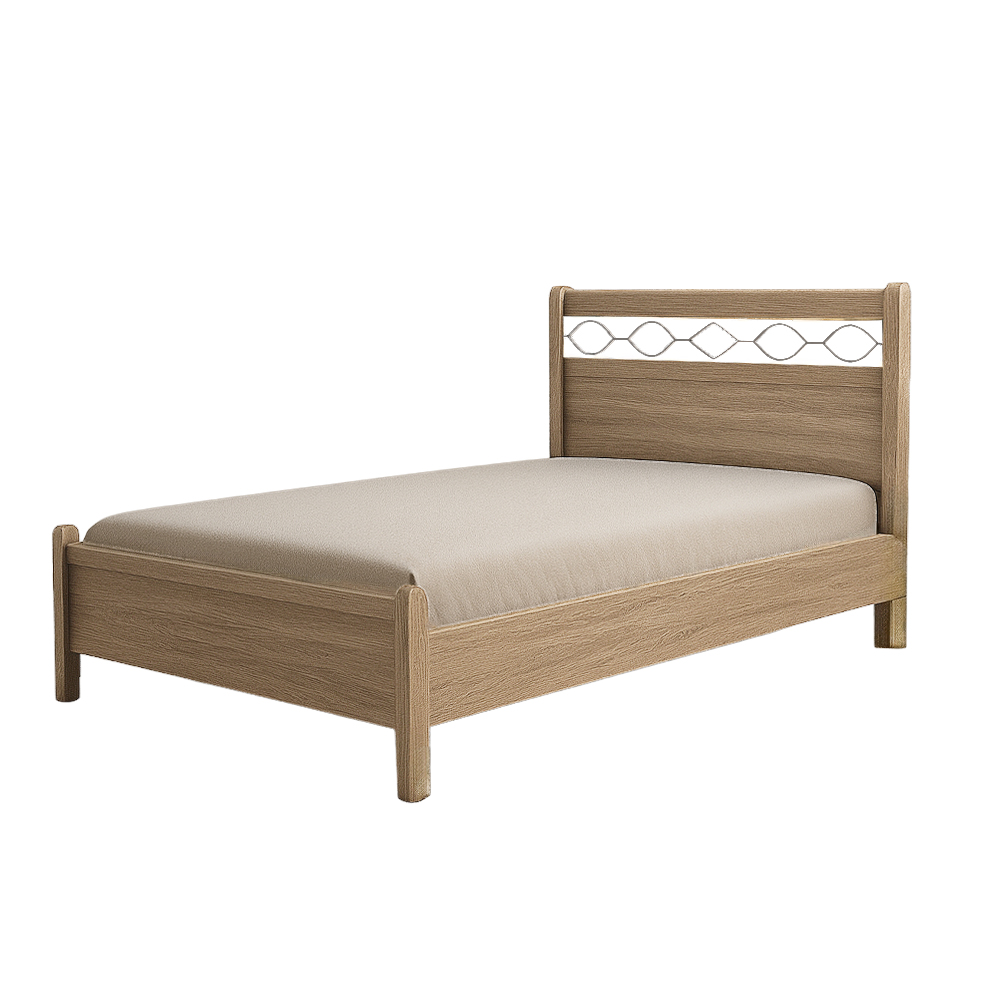 Το κομψό κρεβάτι του σετ αποτελεί το κεντρικό στοιχείο του υπνοδωματίου, με στιβαρή κατασκευή που εξασφαλίζει άνεση και σταθερότητα.