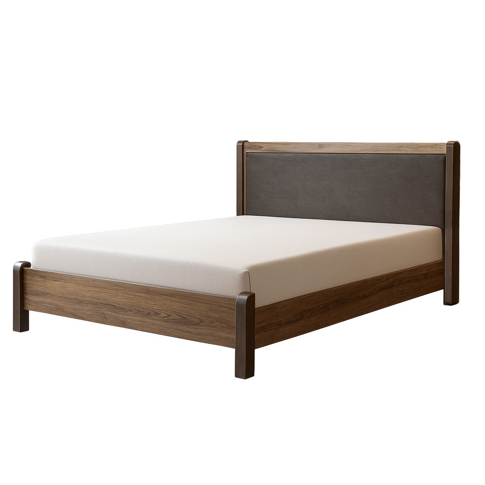 Το κομψό κρεβάτι του σετ αποτελεί το κεντρικό στοιχείο του υπνοδωματίου, με στιβαρή κατασκευή που εξασφαλίζει άνεση και σταθερότητα.