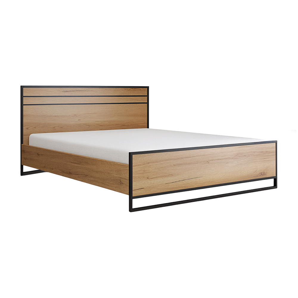 Το κομψό κρεβάτι του σετ αποτελεί το κεντρικό στοιχείο του υπνοδωματίου, με στιβαρή κατασκευή που εξασφαλίζει άνεση και σταθερότητα.